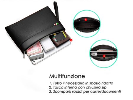 • 2 Tasche interne di facile accesso per Badge di Lavoro/Patente di Guida/Carta d’identità ecc…