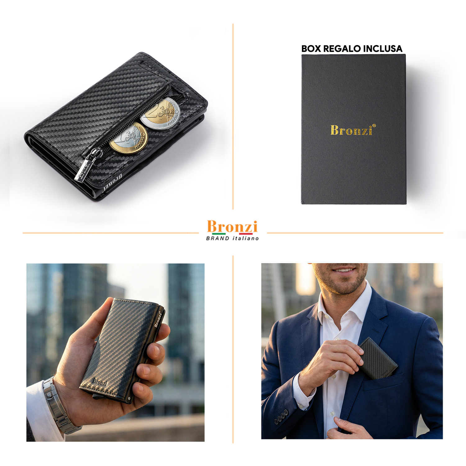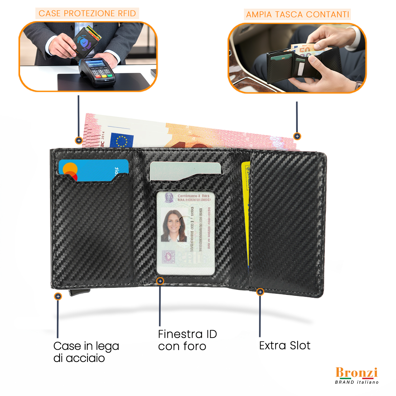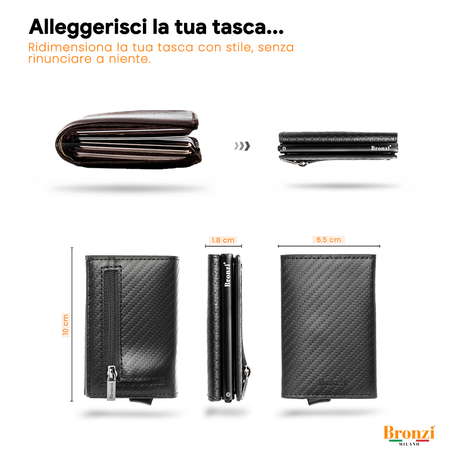 • Fino a 9/10 carte, monete, air tag, contanti, biglietti ecc..