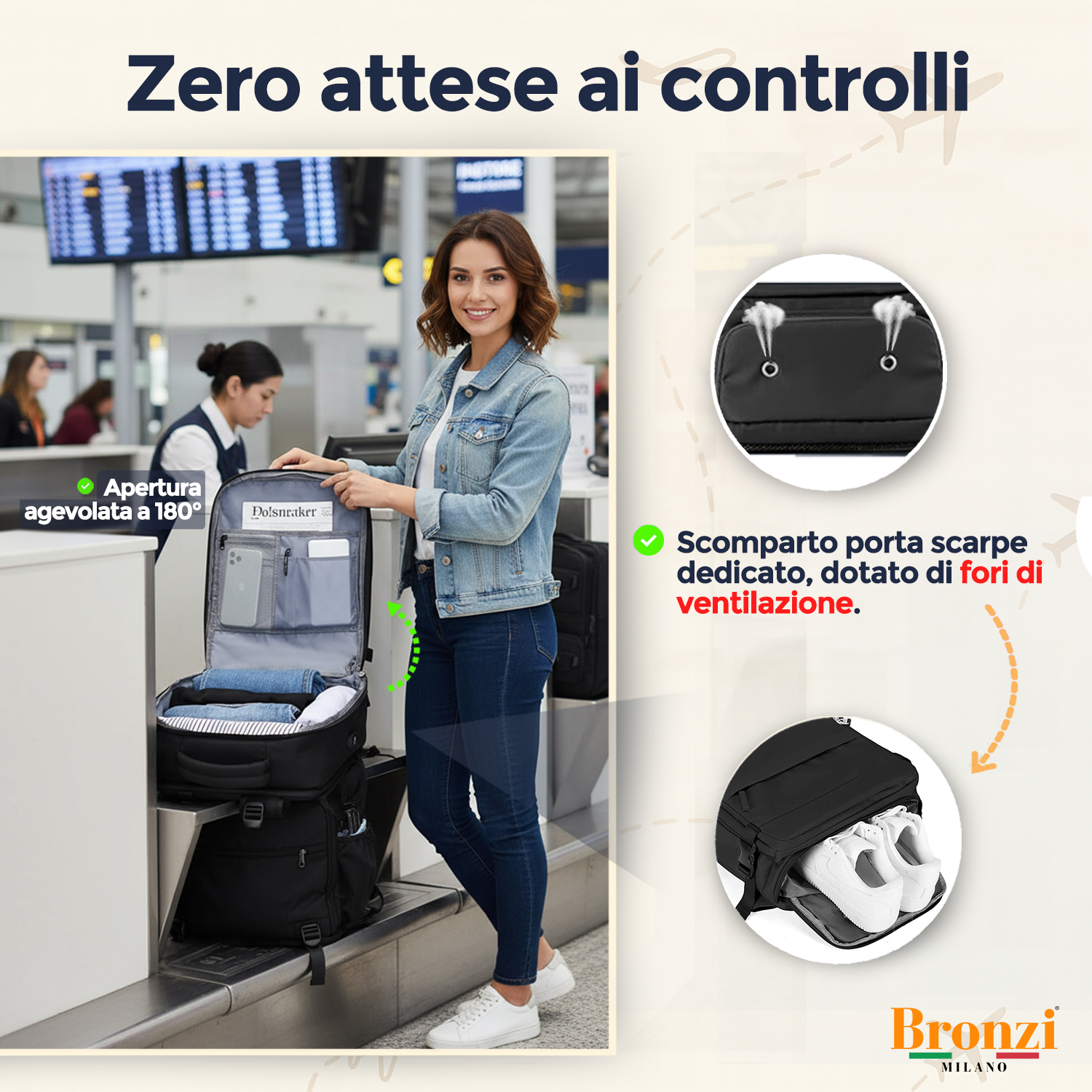 🧳 γ€πŸπŸ–πŸŽΒ° 𝐓𝐀𝐒𝐂𝐀 ππ‘πˆππ‚πˆππ€π‹π„ 𝐀𝐏𝐄𝐑𝐓𝐀】 La tasca principale si apre completamente a 180Β°, come una valigia, per consentire un accesso rapido e ordinato agli oggetti, ideale anche per i controlli di sicurezza in aeroporto.